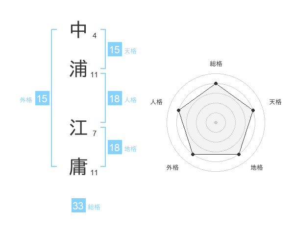 中浦 江庸さんの総格は33画の4点!