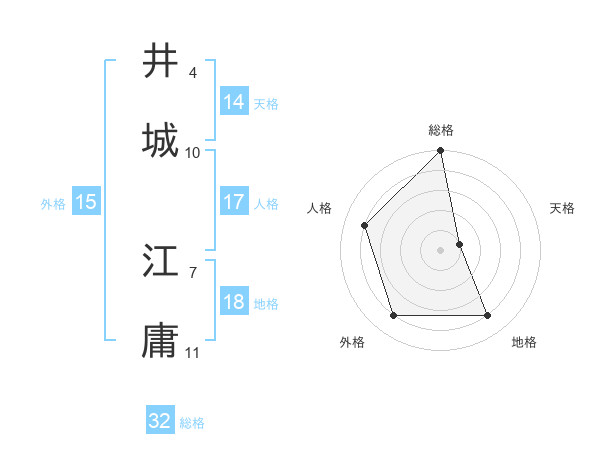 井城 江庸さんの総格は32画の5点!