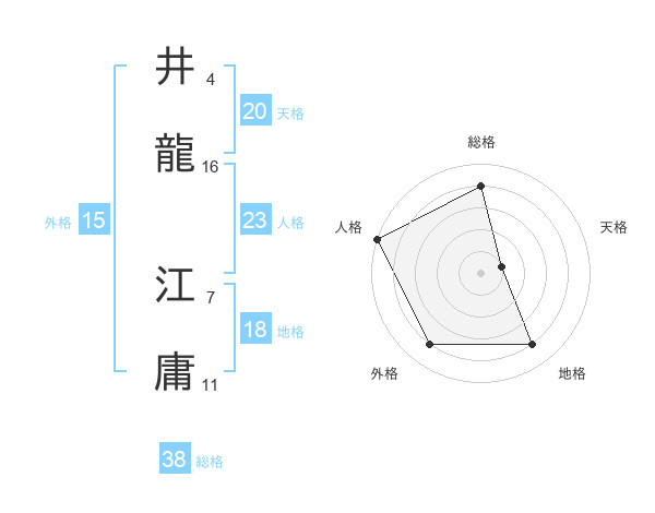 井龍 江庸さんの総格は38画の4点!