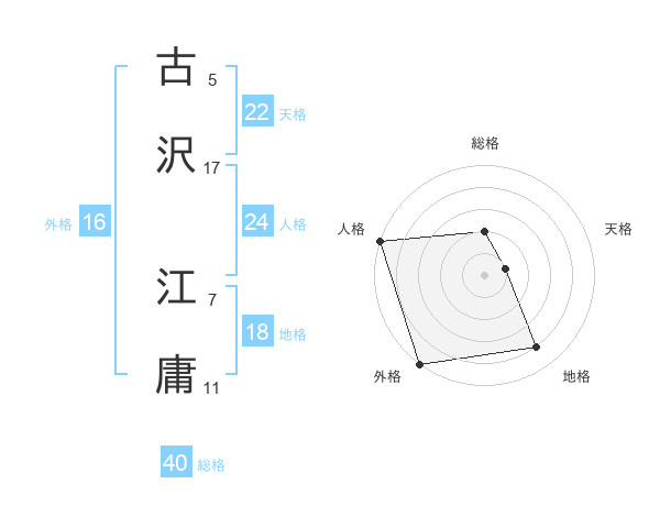 古沢 江庸さんを姓名の画数から五運を鑑定