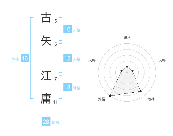 古矢 江庸さんの総格は28画の1点!