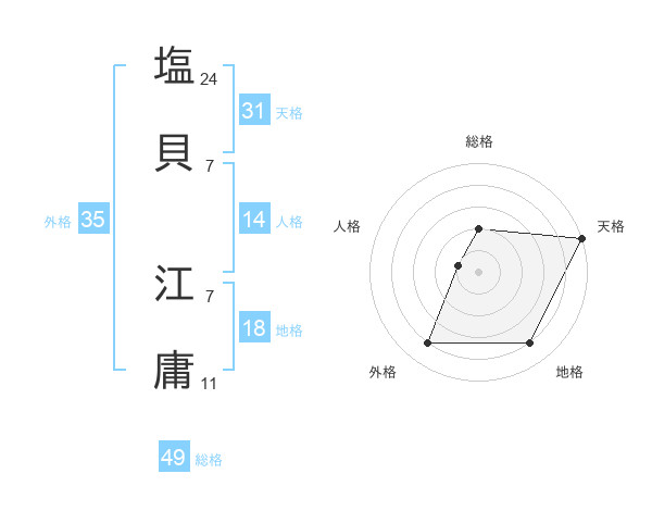 塩貝 江庸さんを姓名の画数から五運を鑑定