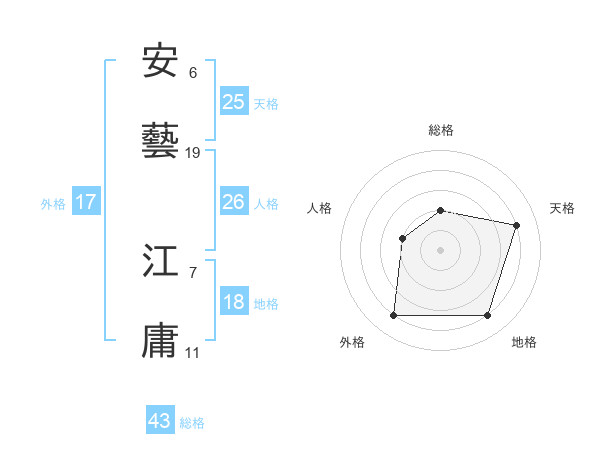安藝 江庸さんを姓名の画数から五運を鑑定