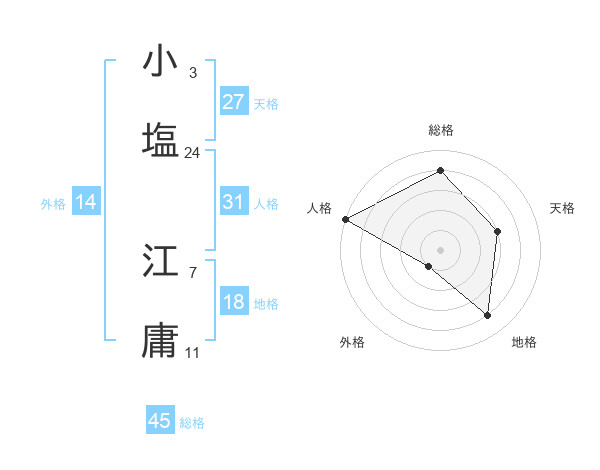小塩 江庸さんの総格は45画の4点!
