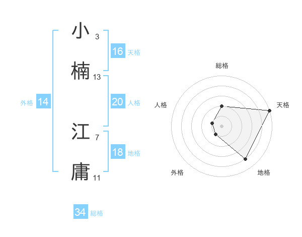 小楠 江庸さんを姓名の画数から五運を鑑定