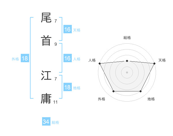 尾首 江庸さんの天格は16画の5点!
