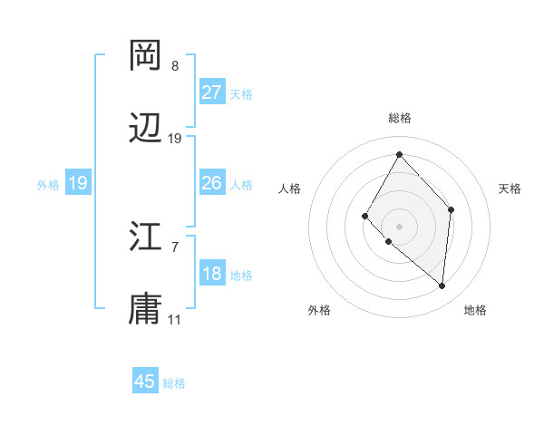 岡辺 江庸さんの総格は45画の4点!