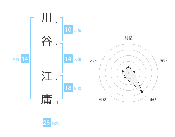 川谷 江庸さんを姓名の画数から五運を鑑定