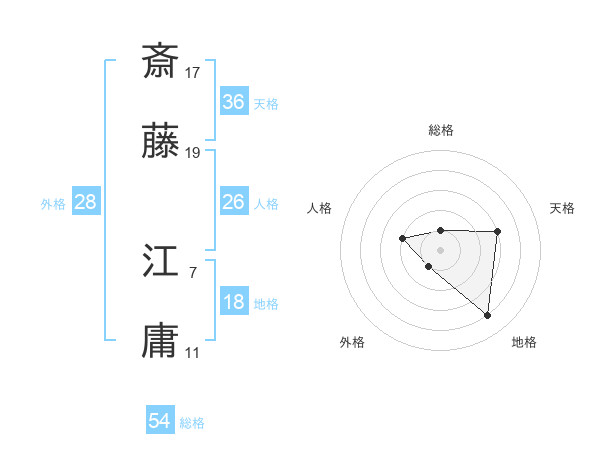 斎藤 江庸さんの天格は36画の3点!