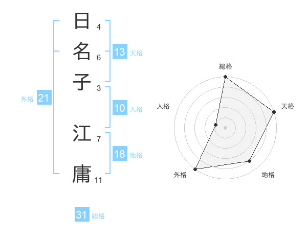 日名子 江庸さんを姓名の画数から五運を鑑定
