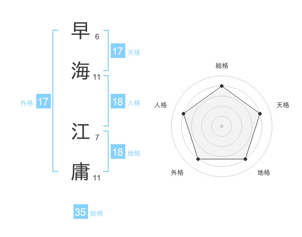 早海 江庸さんの総格は35画の4点!