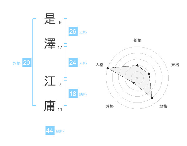 是澤 江庸さんの総格は44画の2点!