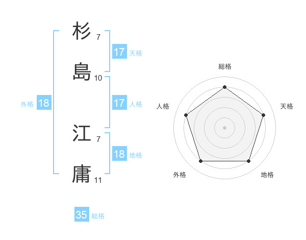 杉島 江庸さんを姓名の画数から五運を鑑定