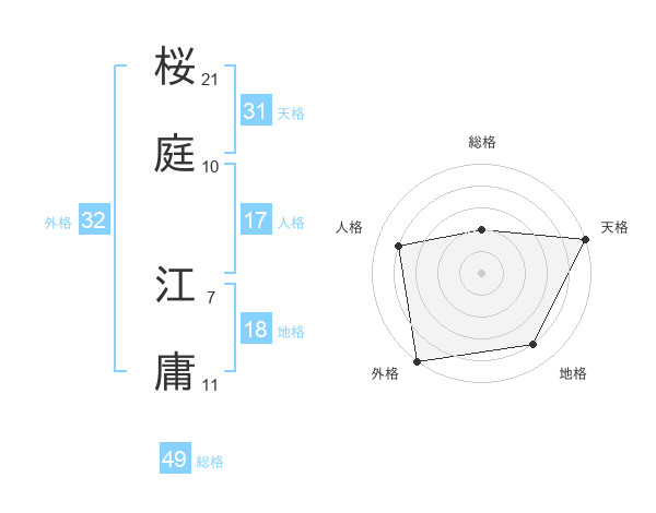 桜庭 江庸さんを姓名の画数から五運を鑑定