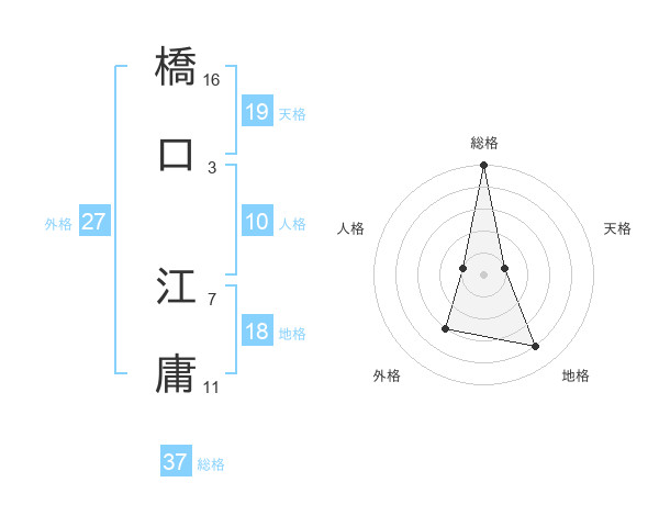 橋口 江庸さんの総格は37画の5点!