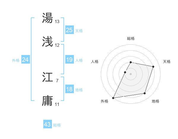 湯浅 江庸さんを姓名の画数から五運を鑑定