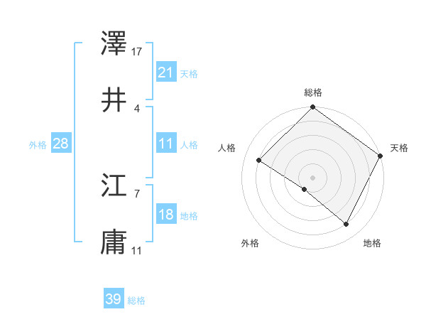澤井 江庸さんの総格は39画の5点!