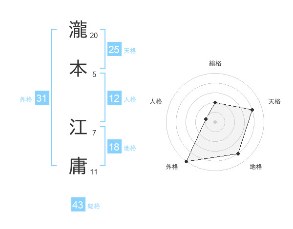 瀧本 江庸さんを姓名の画数から五運を鑑定