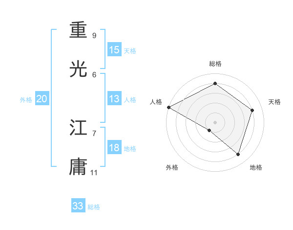 重光 江庸さんの総格は33画の4点!