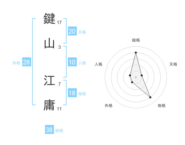 鍵山 江庸さんを姓名の画数から五運を鑑定