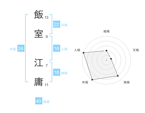 飯室 江庸さんを姓名の画数から五運を鑑定