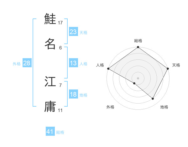 鮭名 江庸さんを姓名の画数から五運を鑑定