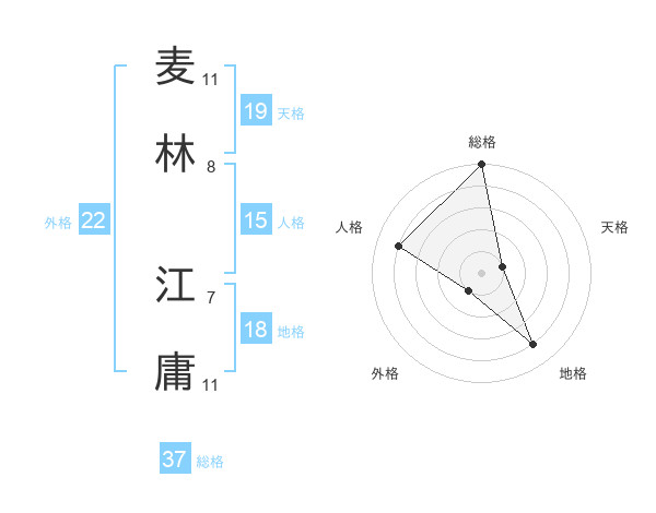麦林 江庸さんを姓名の画数から五運を鑑定