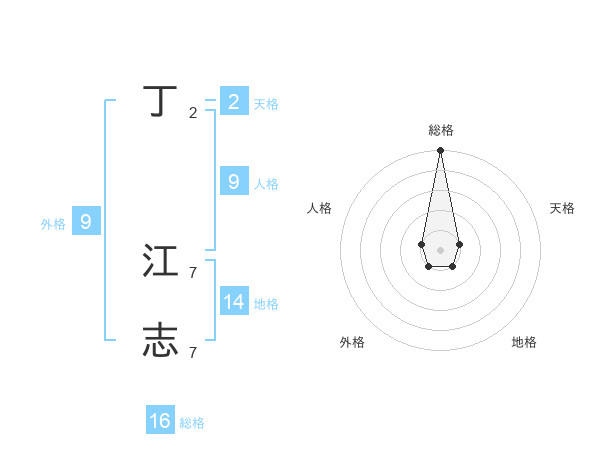 丁 江志さんの総格は16画の5点!