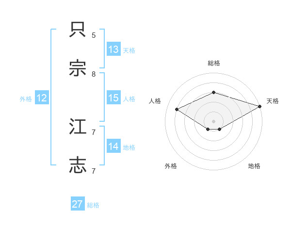 只宗 江志さんの天格は13画の5点!