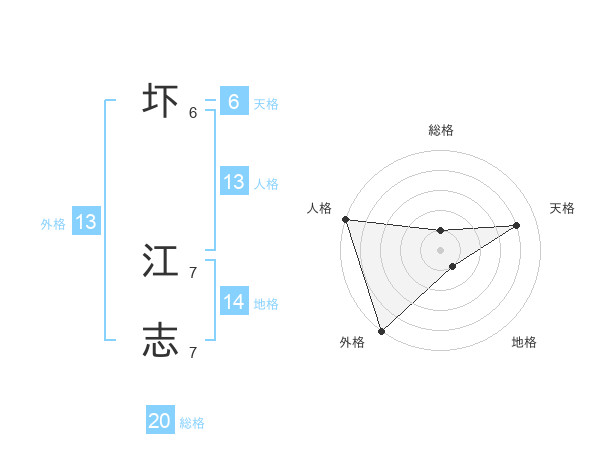 圷 江志さんの外格は13画の5点!