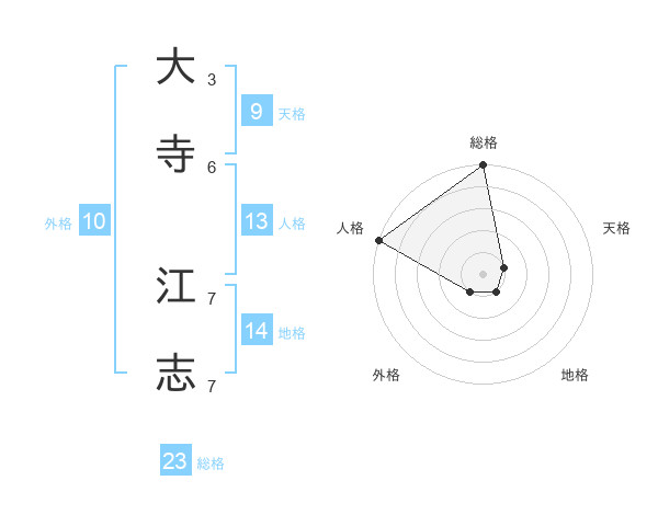 大寺 江志さんの総格は23画の5点!