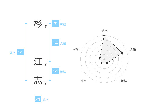 杉 江志さんの総格は21画の5点!