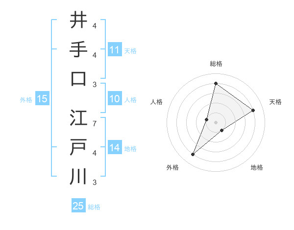 井手口 江戸川さんを姓名の画数から五運を鑑定