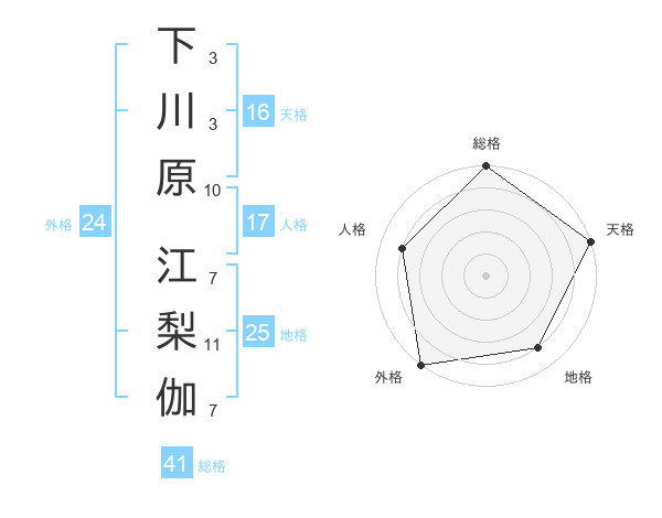 下川原 江梨伽さんを姓名の画数から五運を鑑定