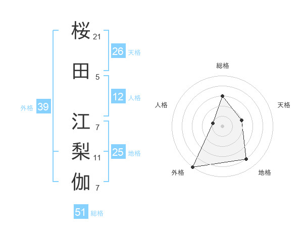 桜田 江梨伽さんを姓名の画数から五運を鑑定