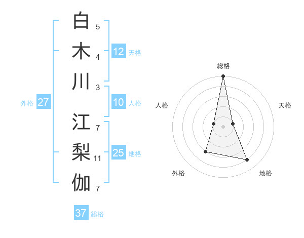 白木川 江梨伽さんを姓名の画数から五運を鑑定
