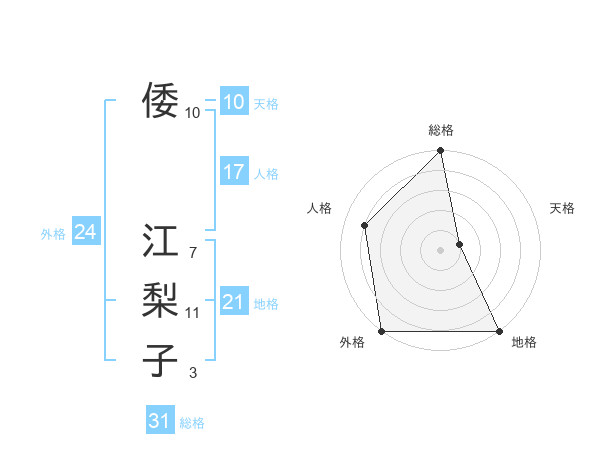 倭 江梨子さんの総格は31画の5点!