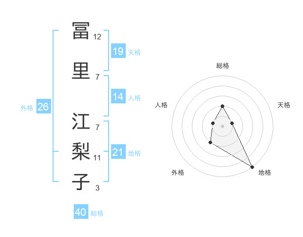 冨里 江梨子さんを姓名の画数から五運を鑑定