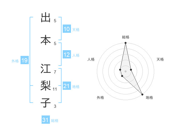 出本 江梨子さんを姓名の画数から五運を鑑定