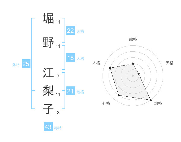 堀野 江梨子さんを姓名の画数から五運を鑑定