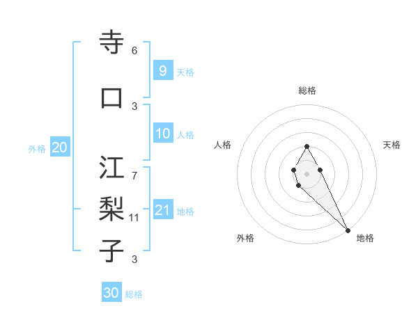 寺口 江梨子さんの総格は30画の2点!