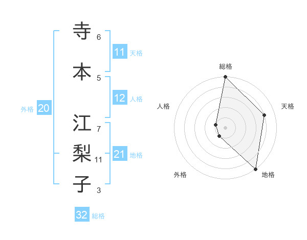 寺本 江梨子さんの総格は32画の5点!