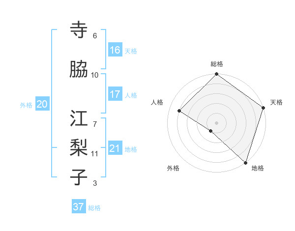 寺脇 江梨子さんを姓名の画数から五運を鑑定