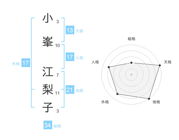 小峯 江梨子さんの天格は13画の5点!