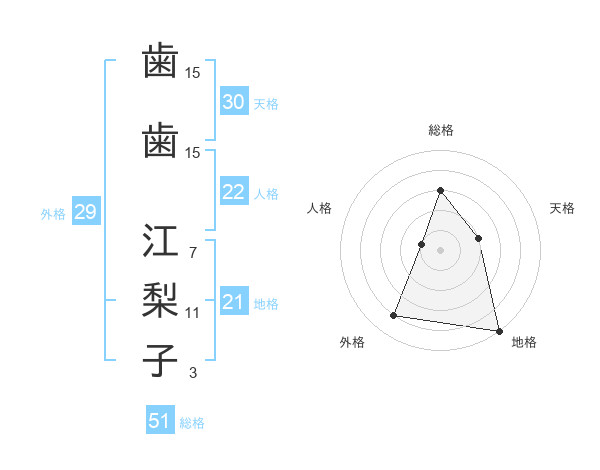歯歯 江梨子さんの総格は51画の3点!