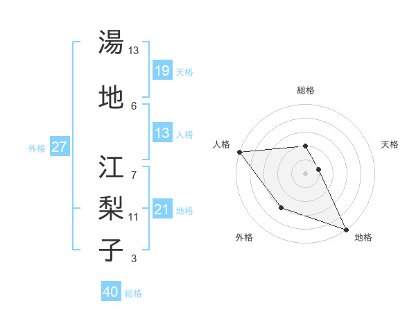 湯地 江梨子さんを姓名の画数から五運を鑑定