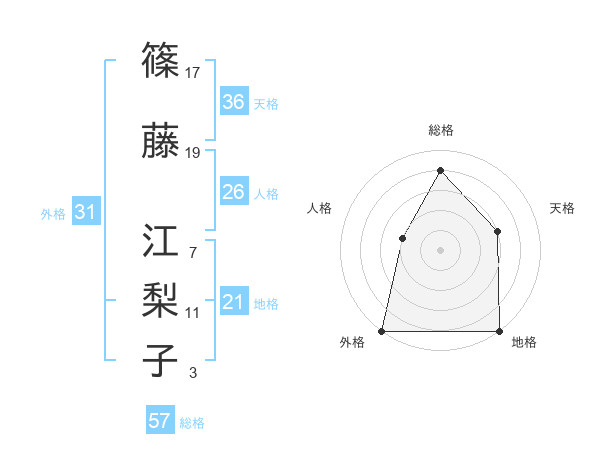 篠藤 江梨子さんを姓名の画数から五運を鑑定