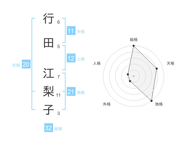 行田 江梨子さんを姓名の画数から五運を鑑定