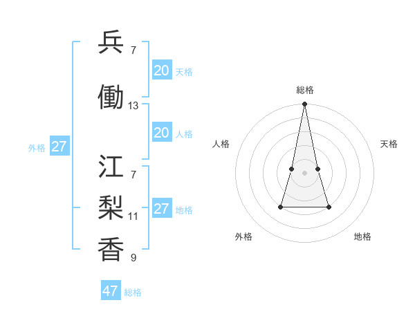 兵働 江梨香さんを姓名の画数から五運を鑑定