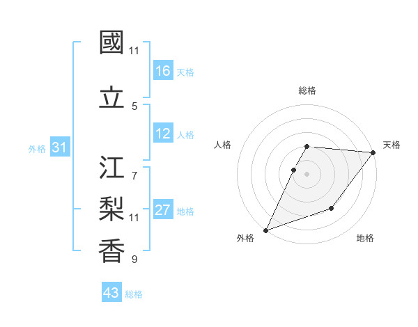 國立 江梨香さんを姓名の画数から五運を鑑定
